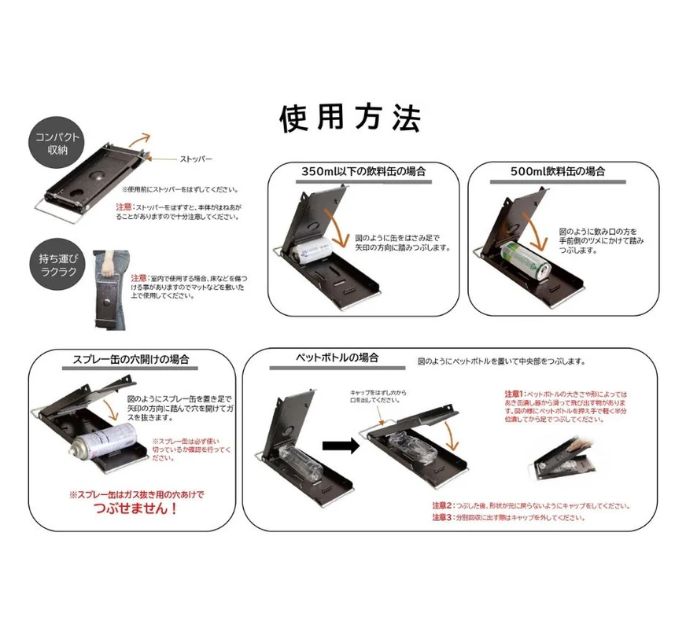 スプレー缶のガス抜き機能付 ※スプレー缶は潰せません