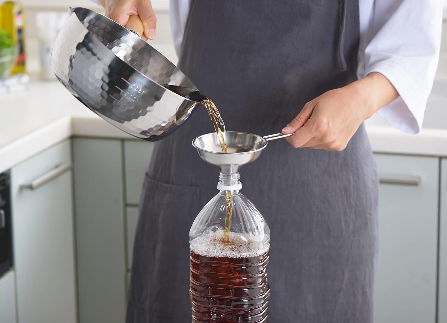 18-8ステンレス製のロート。スパイスや調味料の移し…